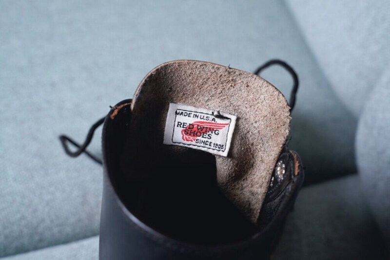 BEAMS本社にアーカイブとして飾れている1995年当時の貴重な別注RED WING。「初めての別注でしたが、その後インライン化するなど、日本発のアメカジスタイルのスタンダードになれたのが、同社として誇らしいところ」