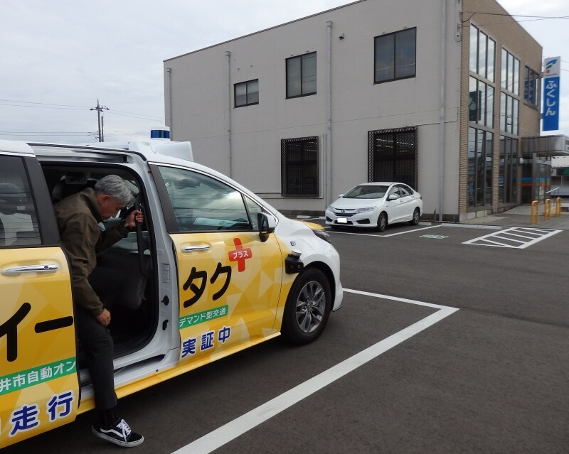 地域の人たちが気軽に乗れるようにと運行されているこの車は「イータクプラス」と呼ばれ、市役所春江支所から春江病院までの約2.5キロを、静かに、そして確実に走っています。