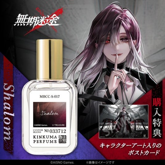 今回の新作は『無期迷途』3周年を記念して企画されたオードパルファム(香水)です。「局長」「ゾーヤ」「ハーメル」「シャローム」「澈」それぞれをイメージした香りを3段階にわけて丁寧に表現しました。