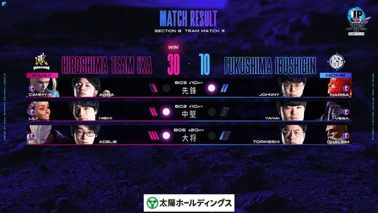 先鋒戦は「GO1選手」、中堅戦は「ひかる選手」が勝利し、10-10で迎えたプレイオフ進出を争う大一番。大将戦を任されたのは「ももち選手」と「竹内ジョン選手」の両名。
