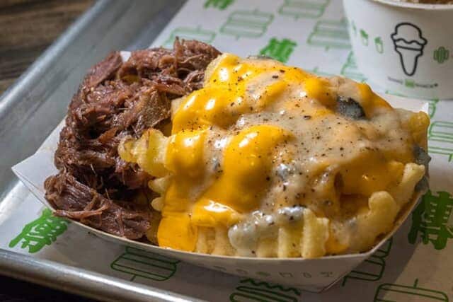 ハンバーガーにつきもののフライドポテトは、日本人の大好きな家庭料理 “肉じゃが” をヒントに、上品な甘辛に煮込んだほろほろの牛頬肉とマリアージュ。さらにフライにはブルーチーズ「ロックフォール」と合わせたシェイク シャックのチーズソースがかかり、手が止まらなくなる一品です。