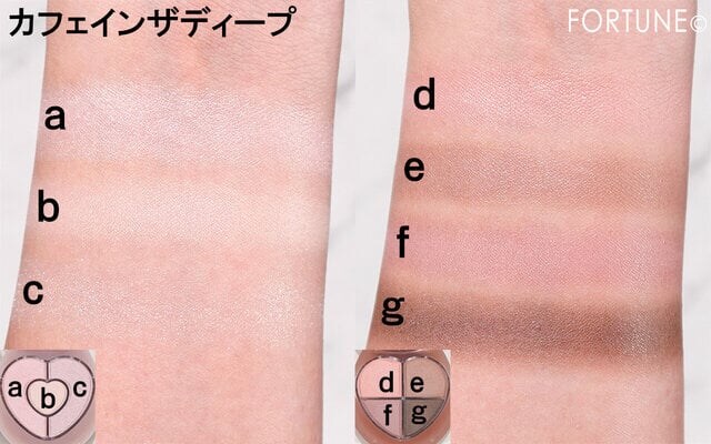 パレット上段の中央のカラーは、頬や鼻筋にハイライトとして使っても可愛いですよ。