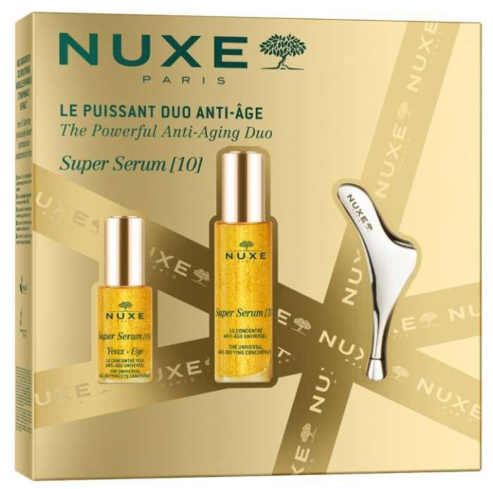 植物由来のマイクロカプセルを配合した「スーパー セラム」&「スーパー セラム アイ コンセントレイト」に、マッサージツールが付いた贅沢な美容液セット。