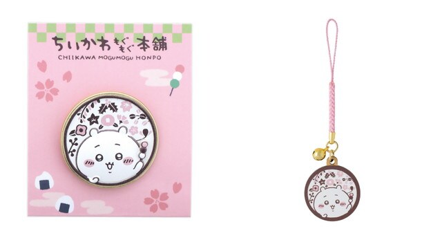 (左)「ピンバッジ 」(990円)、(右)「鈴付きキーホルダー」(880円)