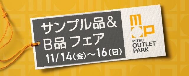 さらに、11月14日(金)から16日(日)までの3日間限定で、「サンプル品&B品フェア」を開催。普段は出会えない掘り出し物やおトクな商品など、アウトレットならではのアイテムが見つかるチャンスです。