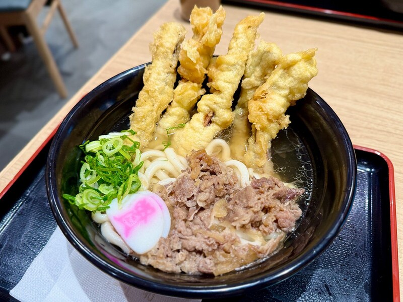 ダシの風味が豊かでほんのり甘いつゆと、それをたっぷり吸ったモチモチのやわらか麺が絶品で、ワイルドなごぼう天と甘じょっぱい牛肉をのせた「肉ごぼ天うどん」が名物として知られています。