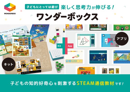 2020年4月にスタートしたワンダーボックスは、デジタルとアナログの組合せにより、家庭で子どもの「思考力・創造力・意欲」を育てるSTEAM領域(※)の通信教育サービスです(対象年齢:4~10歳)。プログラミング、アート、ボードゲーム、パズルなどのあそび感覚の教材で、これからの時代に求められるSTEAM教育領域の基礎能力を培うことができます。キッズデザイン賞、グッドデザイン賞、ペアレンティングアワードなど、数多くのアワードを受賞。教材としてのデザインやクオリティに高い評価をいただいております。