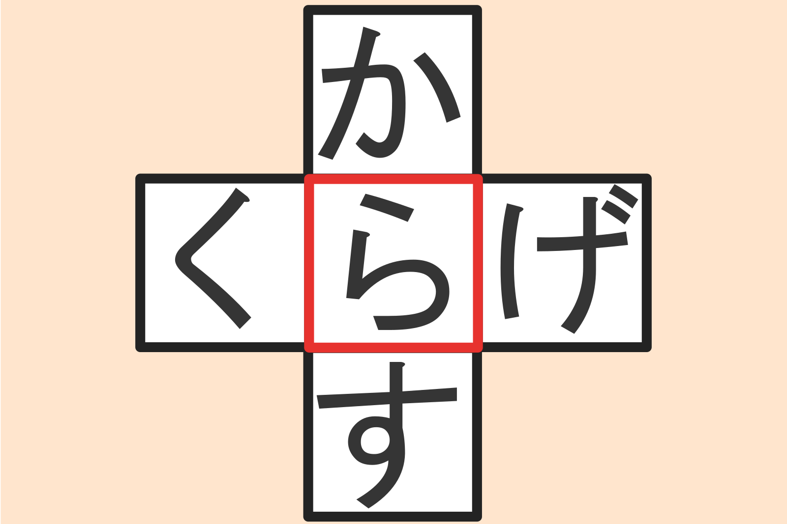 【問題】空欄に入る文字は? 【ヒント】タテ:街で見かける黒い鳥は? ヨコ:水中をゆらゆらと漂う不思議な生き物は?