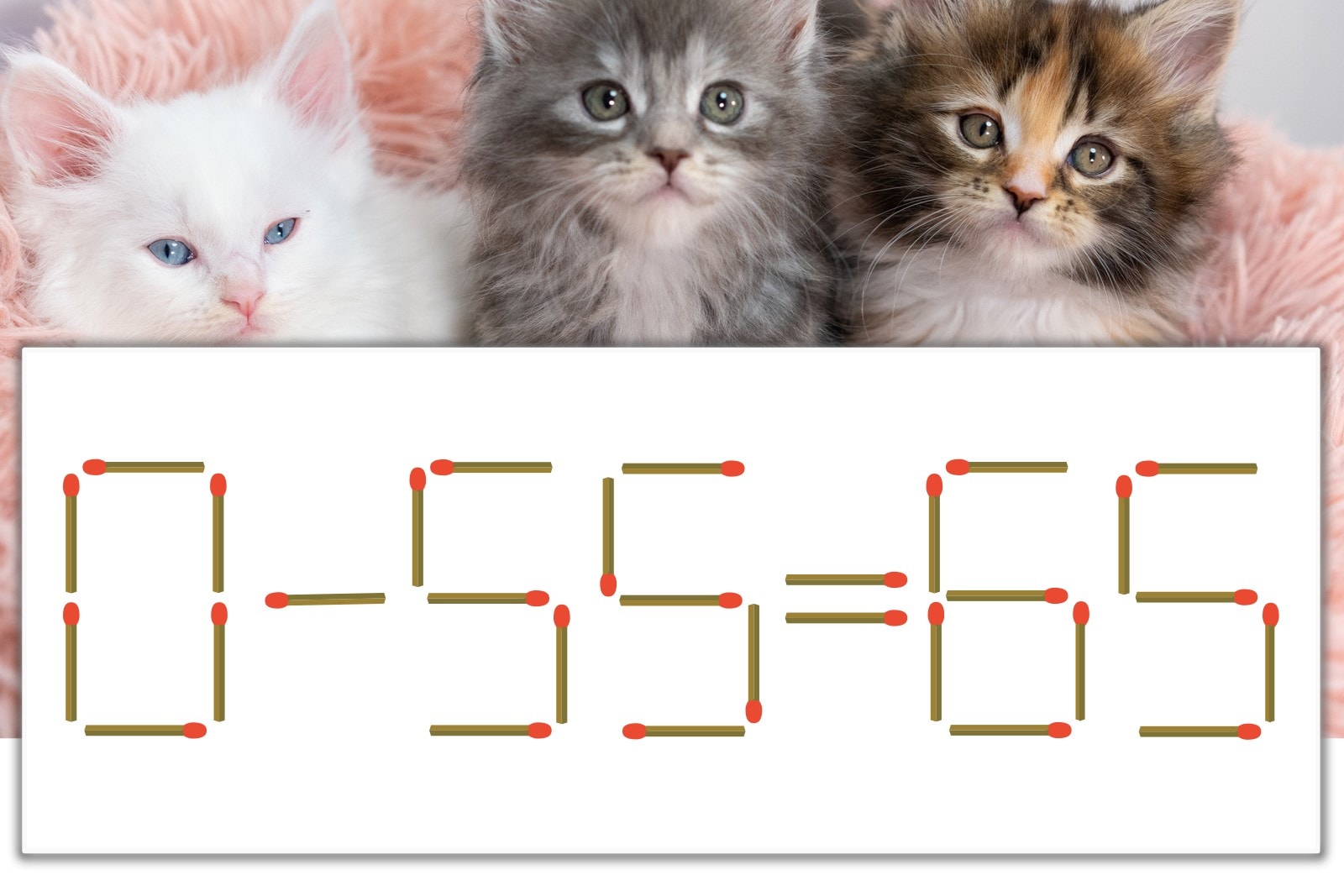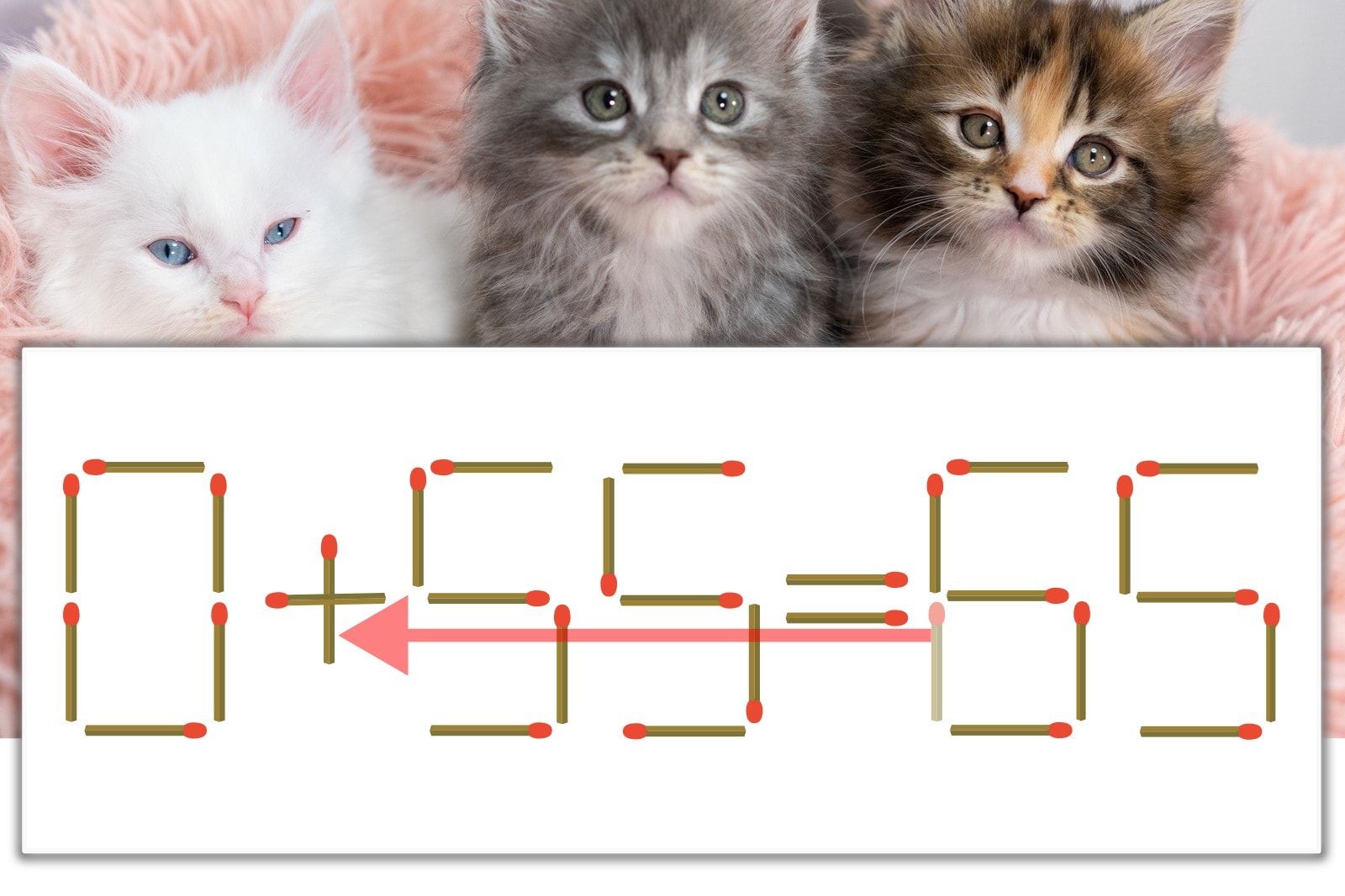 「6」を別の数字に変化させると答えが導き出せます。「6」のマッチ棒を1本移動して、「-」を「+」にしてみましょう。すると、「0+55=55」が成立します。