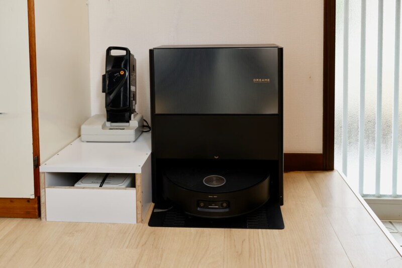 基本的に汚れるのはキッチン、リビング、ダイニングなので、ベースステーションは1階に置くことにした。とはいえ、リビングに大きなベースステーションを置きたくはないので、廊下の端というか、玄関に置くことにした。靴を脱ぎ履きする場所が少し玄関が狭くなるが仕方ない。みなさん、どこに置いてらっしゃるのだろう?