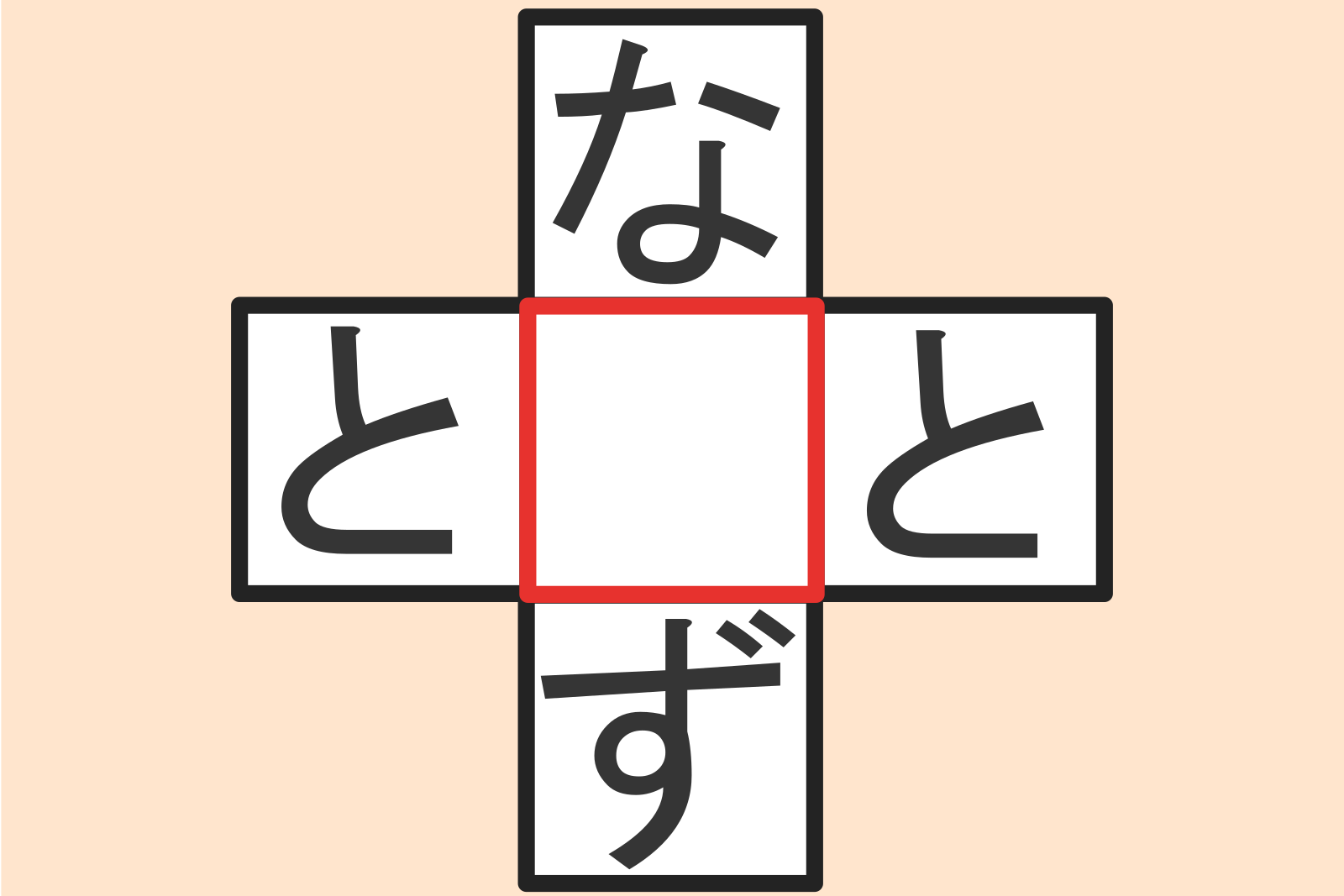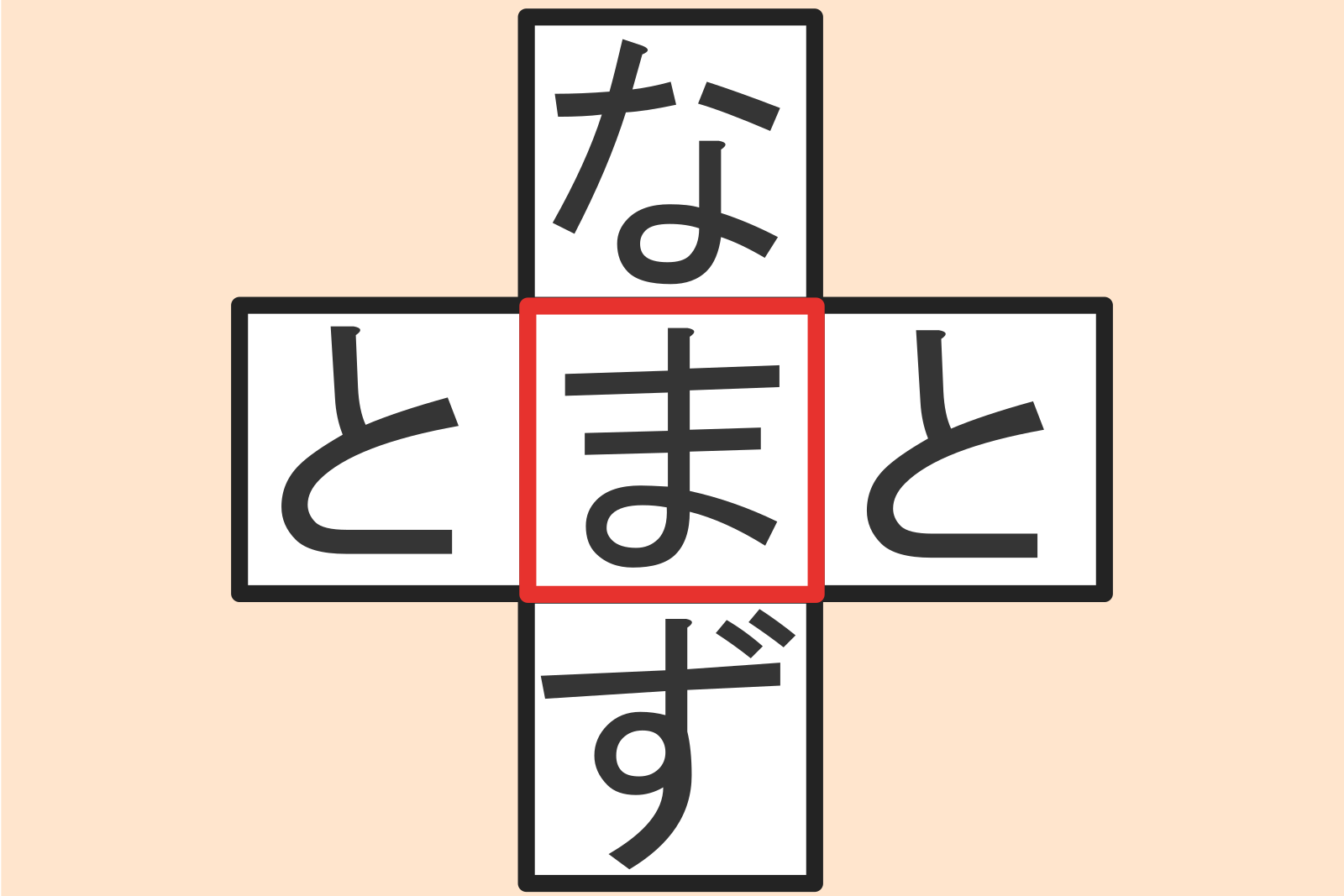 【問題】空欄に入る文字は? 【ヒント】タテ:な〇ずが暴れると地震が来る!? ヨコ:赤くて丸い夏野菜は?