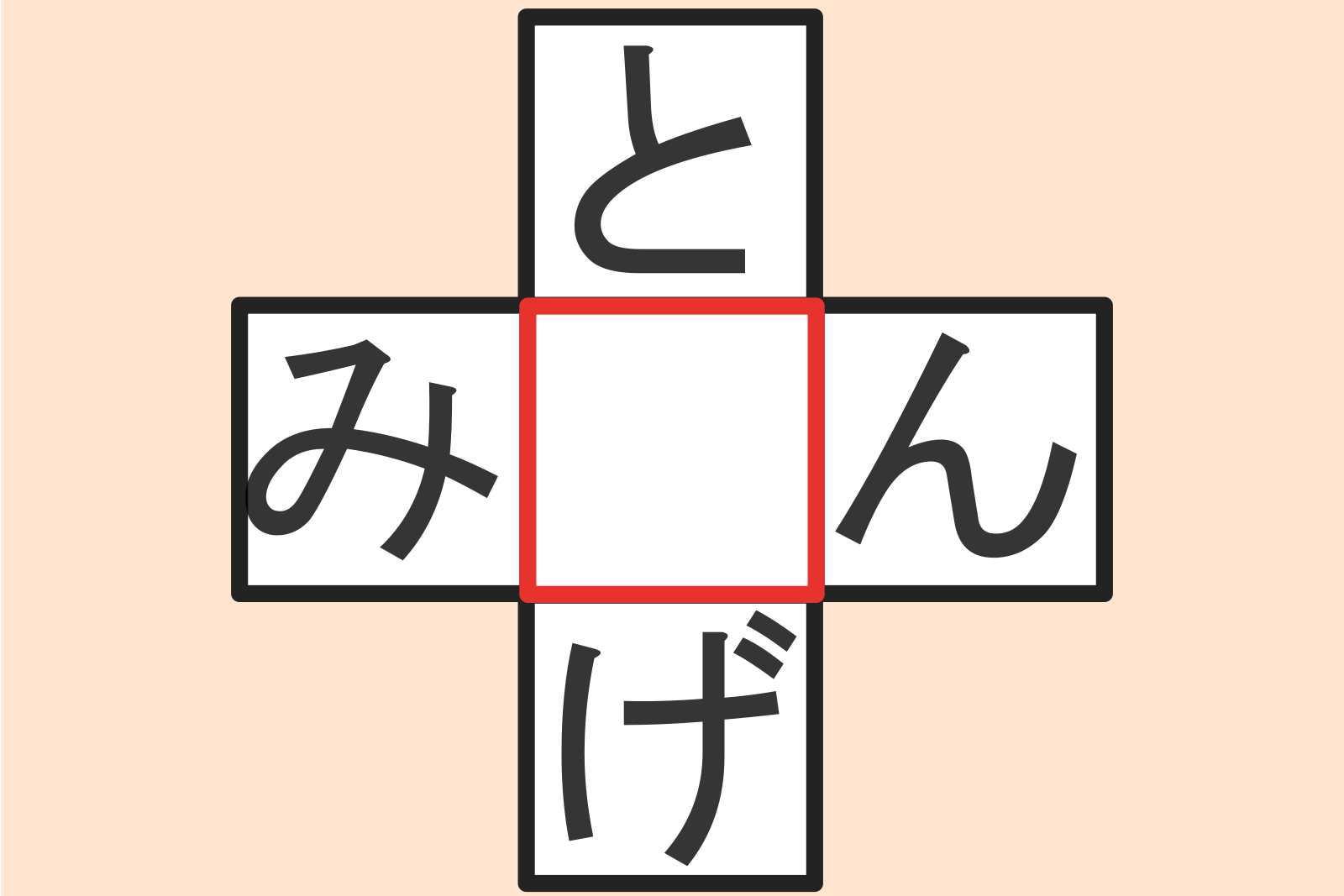 【問題】空欄に入る文字は? 【ヒント】タテ:しっぽを切られても大丈夫な爬虫類って? ヨコ:こたつにみ〇ん♪ 冬に食べたい果物は?