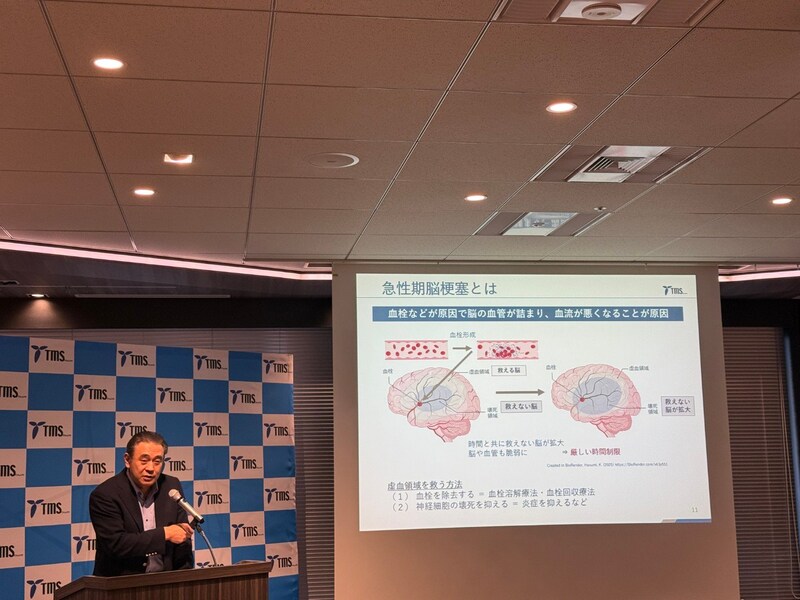 10月29日の世界脳卒中デーに合わせて、脳梗塞治療薬の新薬候補「TMS-007」を開発中の創薬ベンチャーである株式会社ティムスが、プレス向け事業説明会を開催した。そこでは、既存であり唯一である急性期脳梗塞治療薬「t-PA」の課題である発症後4.5時間以内の投与の壁を超える可能性が示されていた。