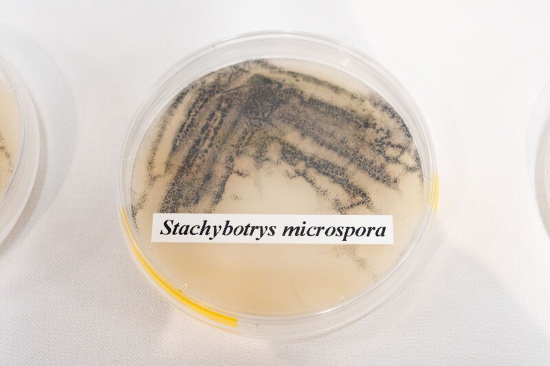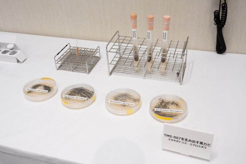 その結果として見つけ出した黒カビ「スタキボトリス」が作る新規化合物群SMTPのメンバーが発見されたのだ。最初は培養液5Lで10ミリグラム程度しかとれなかったが、生産方法を見つけ出して、1Lで10グラムほど生産できるようになった。