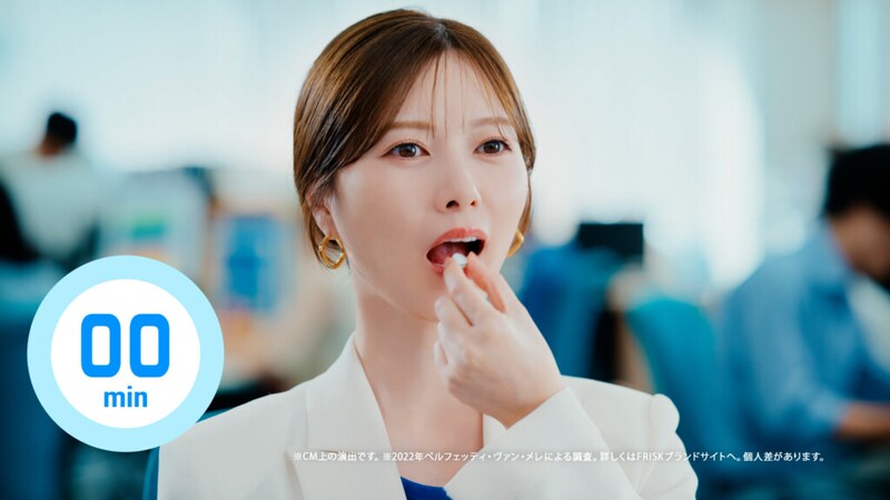 「フリスク クリーンブレス」は、緑茶抽出成分を配合し、キレイな息が60分間持続するのが特徴のタブレットだ。新CMで白石は、仕事にもプライベートにも邁進する会社員を演じる。