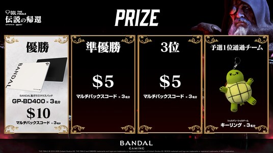 優勝チームには、スポンサーのBANDAL GAMINGより、高性能ガラスマウスパッド「GP-BD400」 が贈呈された。