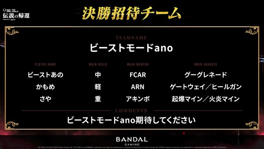 この結果により、GGLの歴史を象徴する二大王者、初代王者「あぽかりぷす!」と、3連覇王者「ビーストモードano」による “夢の決勝戦” が遂に実現することとなりました!
