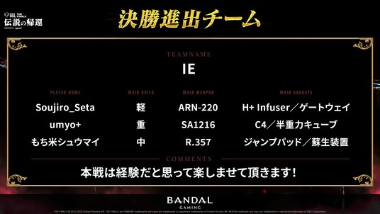 予選を圧倒的な獲得キャッシュで勝ち上がった新鋭 IE。