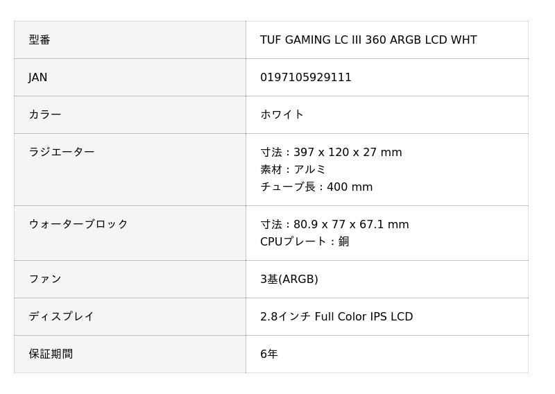 TUF GAMING LC III 360 ARGB LCD WHT | ASUS (エイスース) オールインワン簡易水冷CPUクーラー (フルカラーLCD、ARGBトリプルファン)
