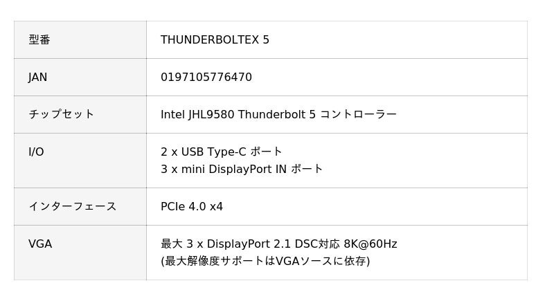 THUNDERBOLTEX 5 | ASUS (エイスース) Thunderbolt 5 増設ボード