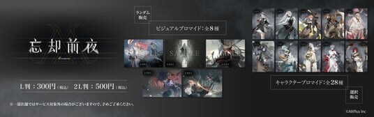 2025年10月14日から約3ヵ月間の期間限定で、本作『忘却前夜』のオリジナルブロマイド(以下「本ブロマイド」)を全国のローソン・ミニストップ店舗内のマルチコピー機にて販売しております。ゲーム内の名場面を繊細に再現した「ビジュアルブロマイド」(全8種)と、お気に入りのキャラクターの魅力を存分に堪能できる「キャラクターブロマイド」(全28種)を展開中です。