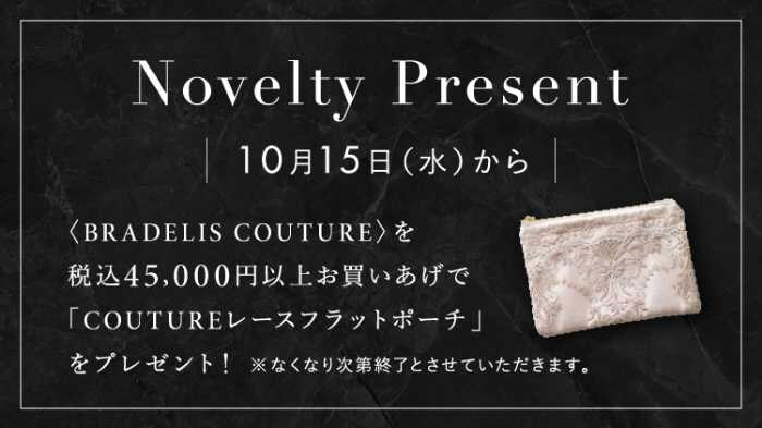また、税込45,000円以上の購入で、Mellowシリーズのレースを使用した「COUTUREレースフラットポーチ」をプレゼント(※先着順・なくなり次第終了)。