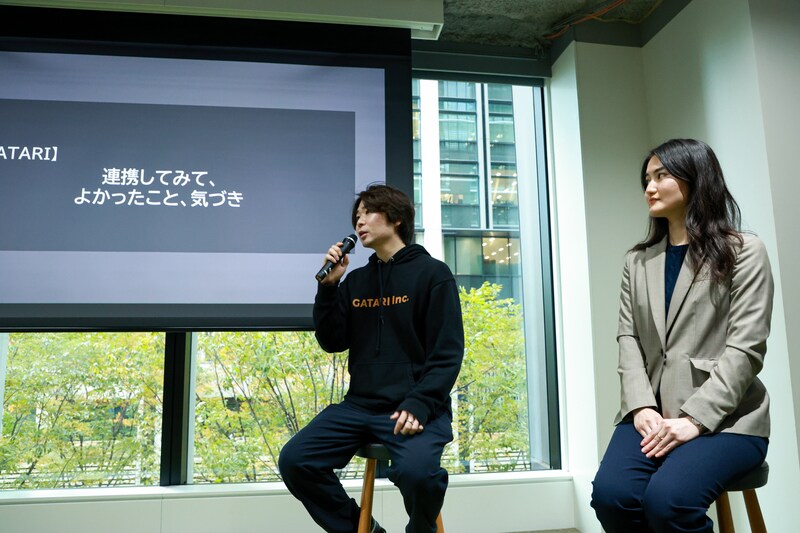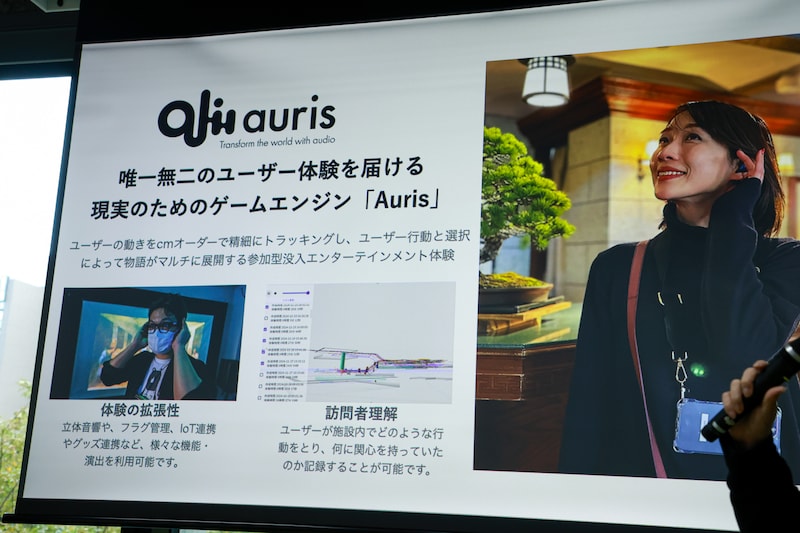GATARI×三菱地所のトークセッションには、株式会社GATARI 代表取締役CEO・竹下俊一氏、三菱地所株式会社 エリアマネジメント事業部・丸岡彩氏が登壇。GATARIが開発・提供・運営するXRサービス「Auris」、センチメートル単位の高精度トラッキング技術と自然な音声フィードバックにより、視覚障がい者に安全で快適な移動と、施設や空間における魅力の体験を提供している。