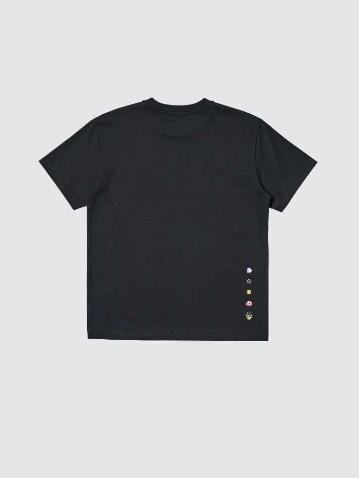 WOMEN用「たまごっちUT」は全4型、各1,990円(税込)。初代たまごっちのゲーム画面やキャラクター「くちぱっち」「まめっち」を刺繍やドット調で表現。