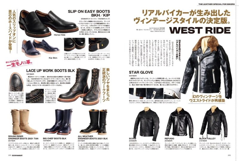 愛車のパンで日本中を駆けまわるリアルバイカーでもある代表の中井さんを筆頭に、スタッフにもバイク乗りが多い「ウエストライド」は、往年のヴィンテージをモチーフにしながら、バイク乗りが実際に使うことを考えてプロダクツを製作するため、ファッションと機能性の両方を追求したアイテムがほしい人にとって注目すべきブランドなのです。