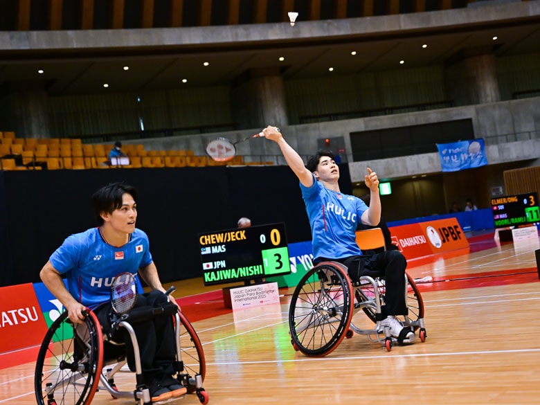 男⼦ダブルスの新ペア、⻄村啓汰/梶原大暉そんな中、決勝では強敵のマレーシアペアに勝利。チェアワークが持ち味の⻄村啓汰(WH1)は、「打つ場所が以前よりも洗練され、ポジショニングもしっかり考えられるようになってきた」と成長点を挙げ、中国・韓国勢不在の大会ながら優勝を素直に喜んだ。