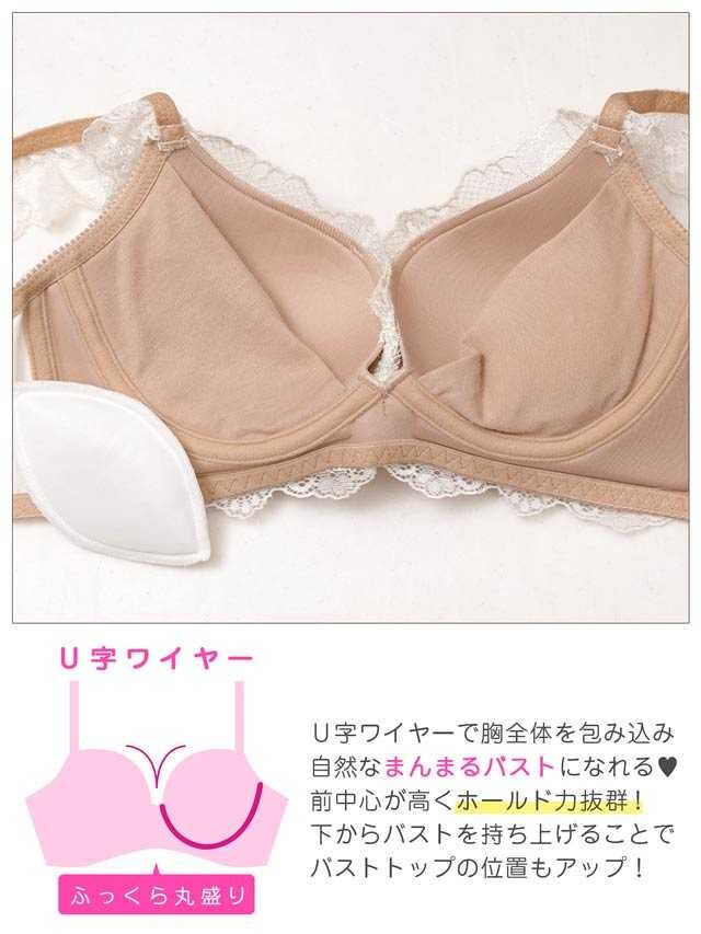 サイズ展開:A~Fカップ/アンダー65~75(カラー:シュガーピンク・ミルキークリーム)