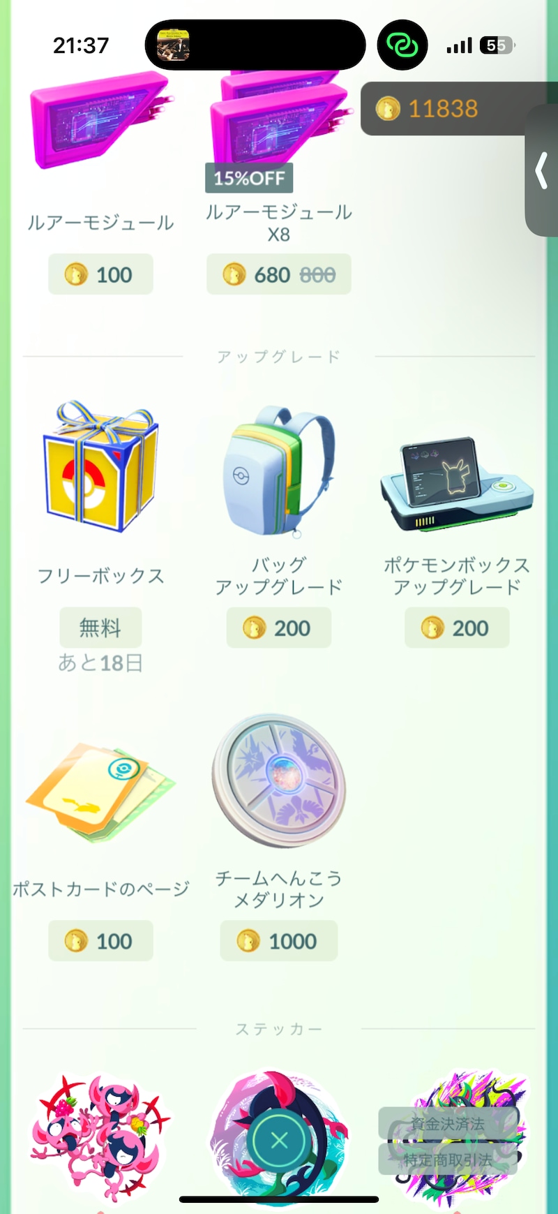 ▲受け取り前であれば、アップグレードの欄に「フリーボックス」が表示されます。
