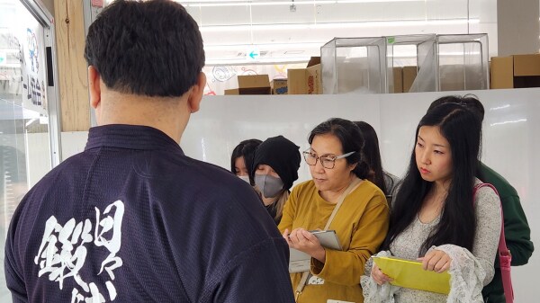 ▲ 写真:「クレーンゲーム達人検定」に参加する外国人参加者たち(2025年5月撮影)
