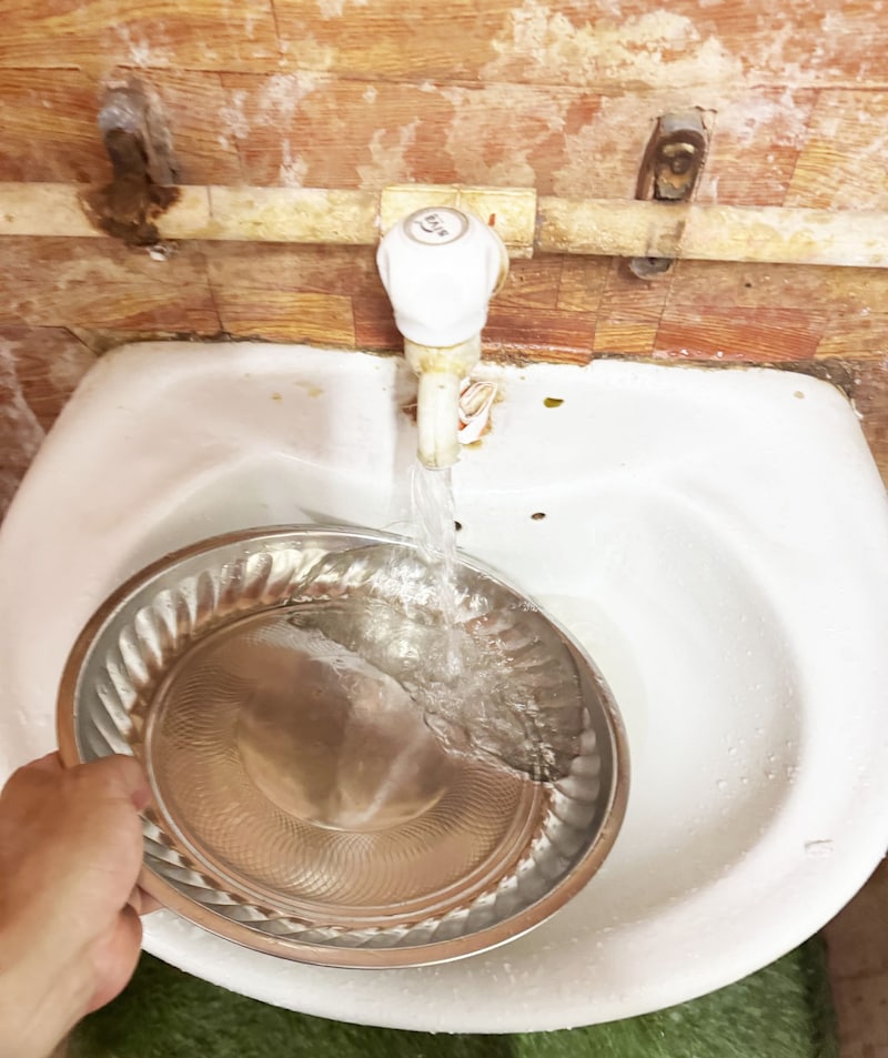 ちなみに、食べ終えたら手を洗うとともに、お皿も洗って返却します。客の皿洗いはインド文化で定番のシメ方ですね。