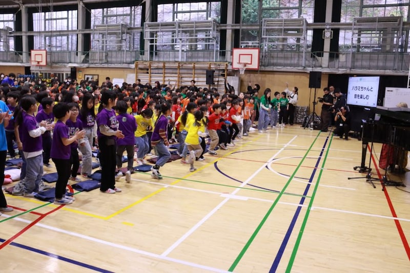 ハラミちゃんの演奏速度などに合わせて子どもたちは体を動かし、ハラミちゃんも子どもたちと一緒に音を楽しみました。