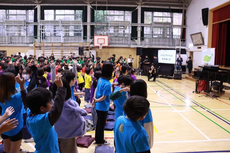 最後にハラミちゃんの演奏で、同校の愛唱歌「菅刈フォーエバー 未来へ」を子どもたちが合唱し、本イベントを締めくくりました。