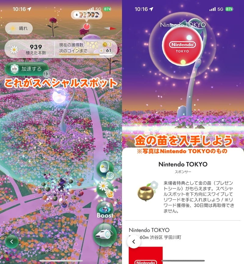今回より他店を含め対象のスペシャルスポットから“フォトバッジ”を身につける赤ピクミンの苗が入手できる。