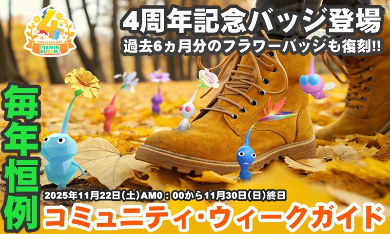 『ピクミン ブルーム』年に1度の恒例行事“コミュニティ・ウィーク”は、周年記念バッジのほか過去に開催されたコミュニティ・デイのフラワーバッジも獲得できる特別な期間限定イベントだ。