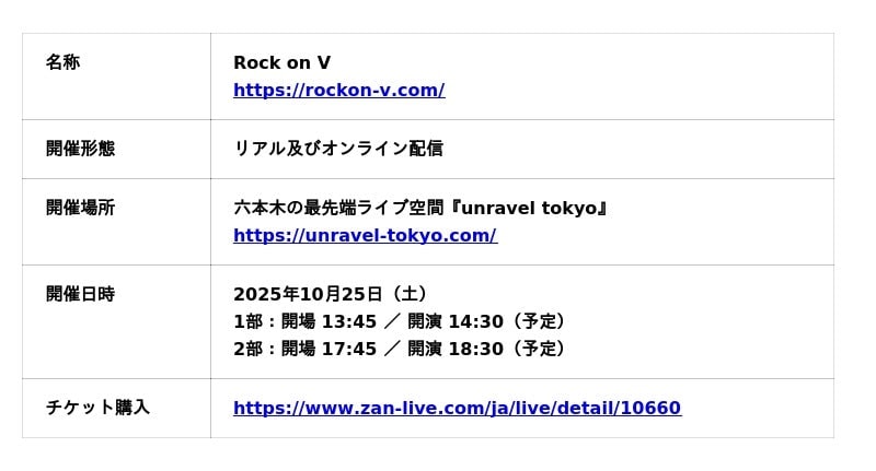 ▶ Rock on V公式サイト:https://rockon-v.com/
