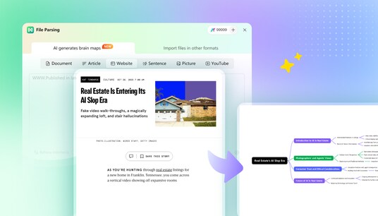 AIがPDFやWord、Webページなどのコンテンツを自動で解析し、要約・構造化します。バージョン13では新たにWebページの解析に対応し、URLを入力するだけで、Webページの内容を構造的に整理したマップを自動作成することが可能になりました。