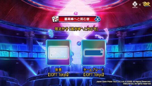 株式会社Skyfall(東京都港区 代表取締役社長:長谷川 智一、以下Skyfall)が運営するバトロワ式オンラインポーカーゲーム『ポーカーチェイス』は、ジャパンオープンポーカーツアー株式会社(東京都新宿区、代表: 亀井 翼、以下ジャパンオープンポーカーツアー)が開催する国内最大規模のポーカーイベント「JOPT 2026 Tokyo #01」にて、2025年11月20日(木) ~ 12月20日(土)の期間に、公式サテライト(予選)とJOPT 2026 Tokyo #01 Main Event Online Day 1(本選)を開催することが決定しました。