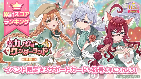 11月13日(木)よりイベント「カノジョ・イン・ワンダーランド第1弾」を開催しました。当イベントでは、イベントマップで集めたポイントで、ピックアップガチャチケットやイベント限定の★3サポートカードが獲得できるポイントガチャも登場します。繰り返し挑戦して報酬を手に入れよう!