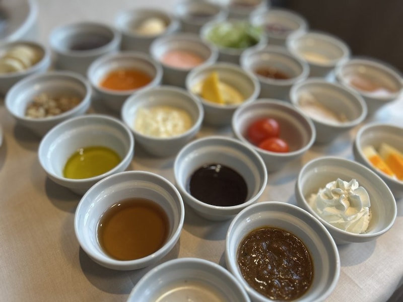 トッピングは25 種類(各 55 円(税込)。しょっぱいから甘いまで、自分好みにアレンジできます。