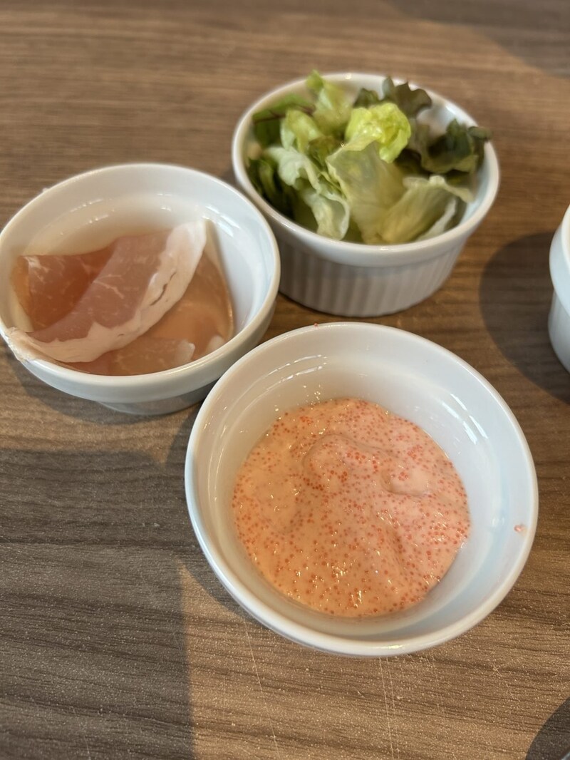 トッピングは全25種類(各55円)。い系からしょっぱい系まで幅広く、今回はしょっぱい系の明太マヨや生ハム、サラダ等を追加して味変を楽しみました。