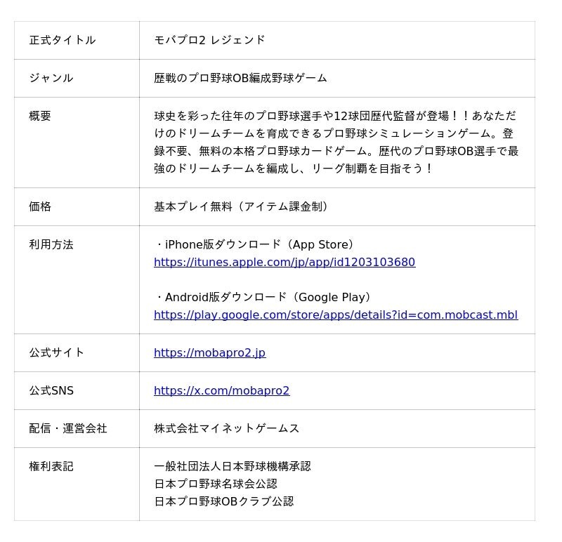 マイネットゲームス及び「モバプロ2 レジェンド」は、ユーザーの皆さまのご愛顧に感謝し、今後も皆さまに長くワクワクをお届けできるようさらなる歩みを続けてまいります。