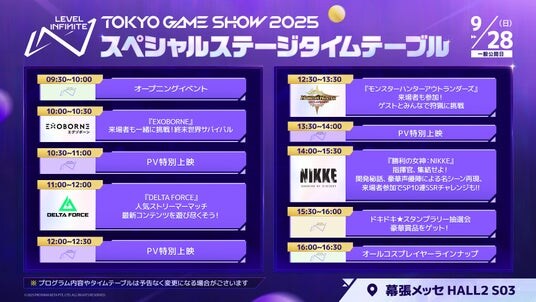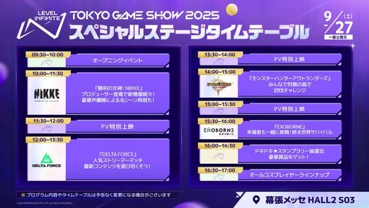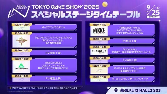 ※Level Infiniteブースで体験できる『モンスターハンターアウトランダーズ』のクエストは、「瑰麗岩礁探索(ソロプレイ)」と「高難度:融光種リオレウス(マルチプレイ)」となります。株式会社カプコンのブースでの試遊内容については、カプコン「東京ゲームショウ2025」特設サイトをご覧ください。