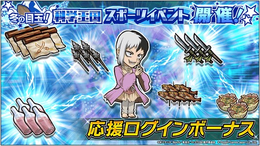 ![Dr.STONE バトルクラフト 復刻イベント「[復刻]冬の目玉!科学王国スポーツイベント開催!」開催](https://assets.mama.aacdn.jp/contents/248/2025/11/1763128168062_19b5sza3xcv.png?maxwidth=800)
