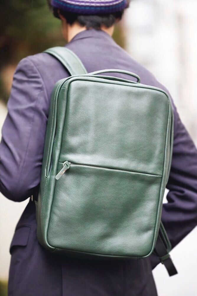レザーを柔らかくし、自然なシボを付けるミリング加工を施したカウレザーを採用したバックパック。ビジネスシーンでも使いやすいミニマムなデザインが特徴で、サイドに付いたハンドルによって手持ちバッグとしても使用することができる。背面にメッシュ素材を使用することで通気性を向上。バックパックらしいカジュアルさと柔らかなレザーが醸し出す上品さを兼備した逸品だ。2万7500円