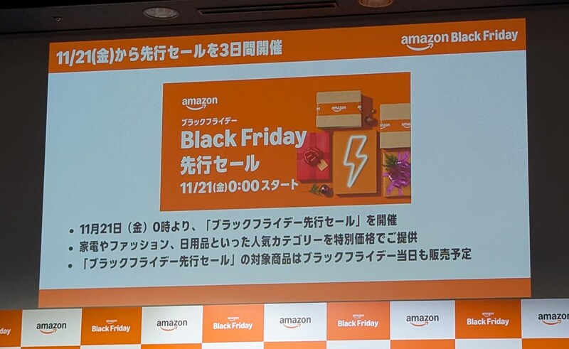 Amazonの年末セール「Amazon ブラックフライデー」が、2025年は11月24日(月)0時から12月1日(月)23時59分までの8日間にわたって開催されます。11月21日(金)0時から開催される先行セールを含めると、今回は計11日間となったビッグセール。その概要が発表されました。