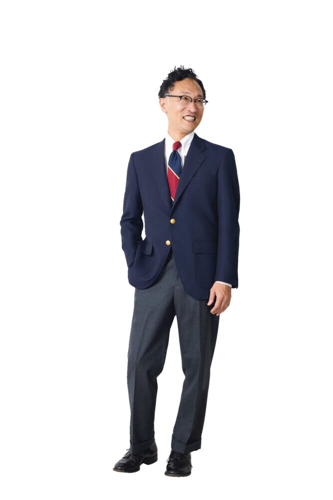 実際に紺ブレをオーダーした編集長・おすぎ村の着回し4コーデ